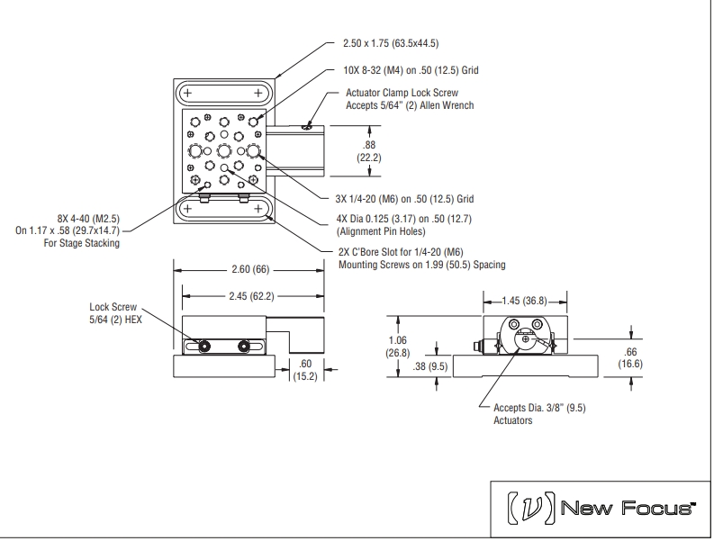 9066-X-M不锈钢交叉滚子轴承平移台是12.7毫米行程的线性平移台,由于这些不锈钢平台的重量由促动器而不是弹簧支撑,因此具有更高的稳定性。这为在Z轴配置中使用这些X轴配置的平台提供了便利。9066系列平台具有大量的安装孔图案,包括8个M2.5,10个M4和3个M6的螺纹安装孔,不包括促动器。请参阅推荐促动器的说明。