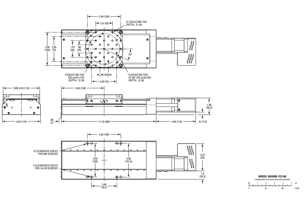 电动线性位移台,100mm行程,集成控制器,M4和M6