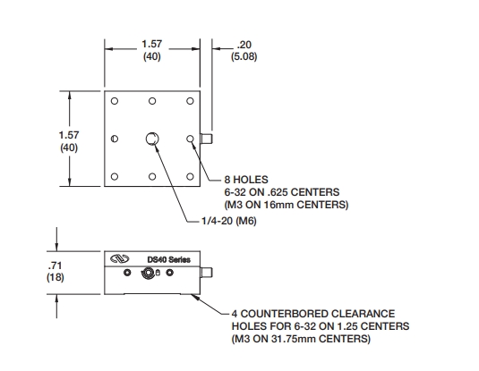 开槽底板可用于将DS位移台通用安装到光学平台或其他位移台上。请参阅附件部分以获取更多信息。