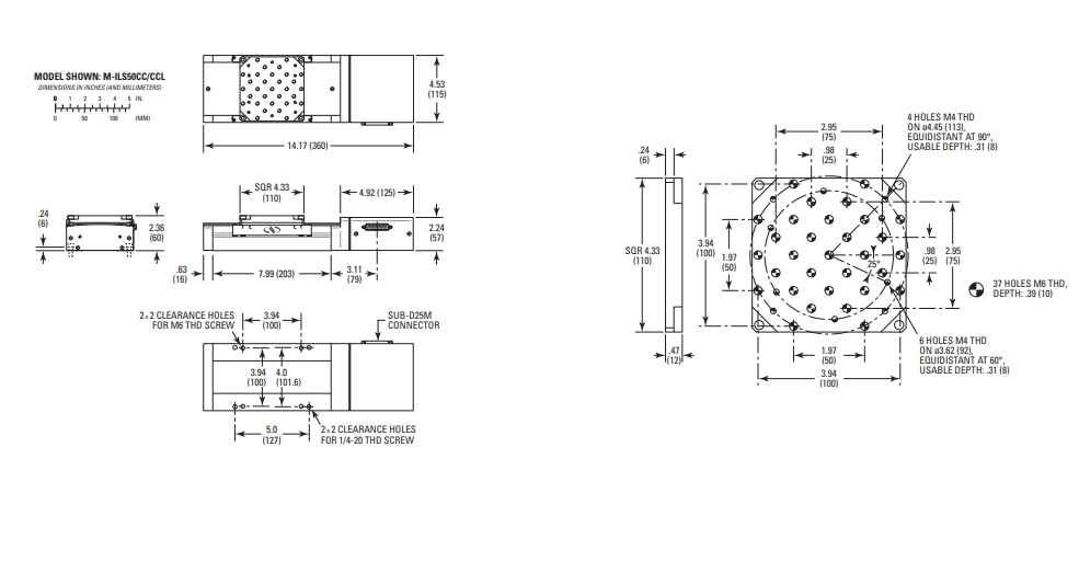 M-ILS50CC 直流伺服线性位移台具有50 mm的行程范围,并在高度刚性和坚固的包装中结合了快速、亚微米分辨率的运动。其带有公制螺纹孔的挤压铝制主体已经过优化,可以避免因铝制主体和钢轨的热膨胀系数不同而产生的弯曲效应。特殊的U形轮廓也为结构提供刚度,同时保持了较低的质量。预加载的无齿隙滚珠丝杠提供快速运动以及快速步进和稳定时间。螺杆的轮廓精确,可将加热降至最低,并延长位移台的使用寿命。循环滚珠轴承滑轨确保精确的直线运动,并消除在典型的直线滚珠轴承或交叉滚柱轴承上发现的滚珠保持架偏移。位置测量由直接位于螺钉上的4000 pts/rev编码器读取,避免螺钉/电机耦合误差。上部的刚性盖防止损坏传动系统,并保护其免受灰尘、碎屑和其他污染物的影响。ILS系列位移台还具有位于行程中心的原点,用于可重复初始化,限位开关用于防止超过行程,弹性行程末端减震器用于平稳的紧急制动。