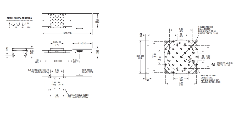 M-ILS50HA高精度直流伺服线性位移台具有50 mm的行程范围,并在高度刚性和坚固的包装中结合了快速的亚微米分辨率运动。其带有公制螺纹孔的挤压铝制主体已经过优化,可以避免因铝制主体和钢轨的热膨胀系数不同而产生的弯曲效应。特殊的U形轮廓也为结构提供刚度,同时保持了较低的质量。预加载的无齿隙滚珠丝杠提供快速运动以及快速步进和稳定时间。螺杆的轮廓精确,可将加热降至最低,并延长位移台的使用寿命。循环滚珠轴承滑轨确保精确的直线运动,并消除在典型的直线滚珠轴承或交叉滚柱轴承上发现的滚珠保持架偏移。M-ILS50HA具有集成的线性标尺,可提供0.1 µm的分辨率反馈。上部的刚性盖防止损坏传动系统,并保护其免受灰尘、碎屑和其他污染物的影响。ILS系列位移台还具有位于行程中心的原点,用于可重复初始化,限位开关用于防止超过行程,弹性行程末端减震器用于平稳的紧急制动。