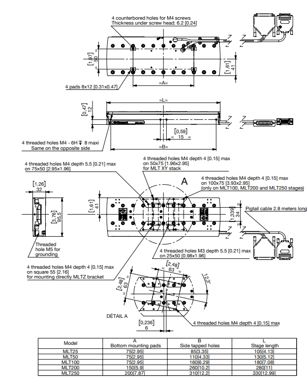 MLT250 是一款行程为 250 毫米的载物台,采用 FEM 优化底座设计,采用高强度和稳定的铝合金,具有最高的刚性和热性能。 选择的组件,如长寿命和高负载循环球轴承、大推力直线电机和高精度直线编码器,不仅要考虑性能,还要考虑可靠性。 进行了大量测试以确保 MLT 的高可靠性性能。 内置限位开关可防止超程和碰撞。