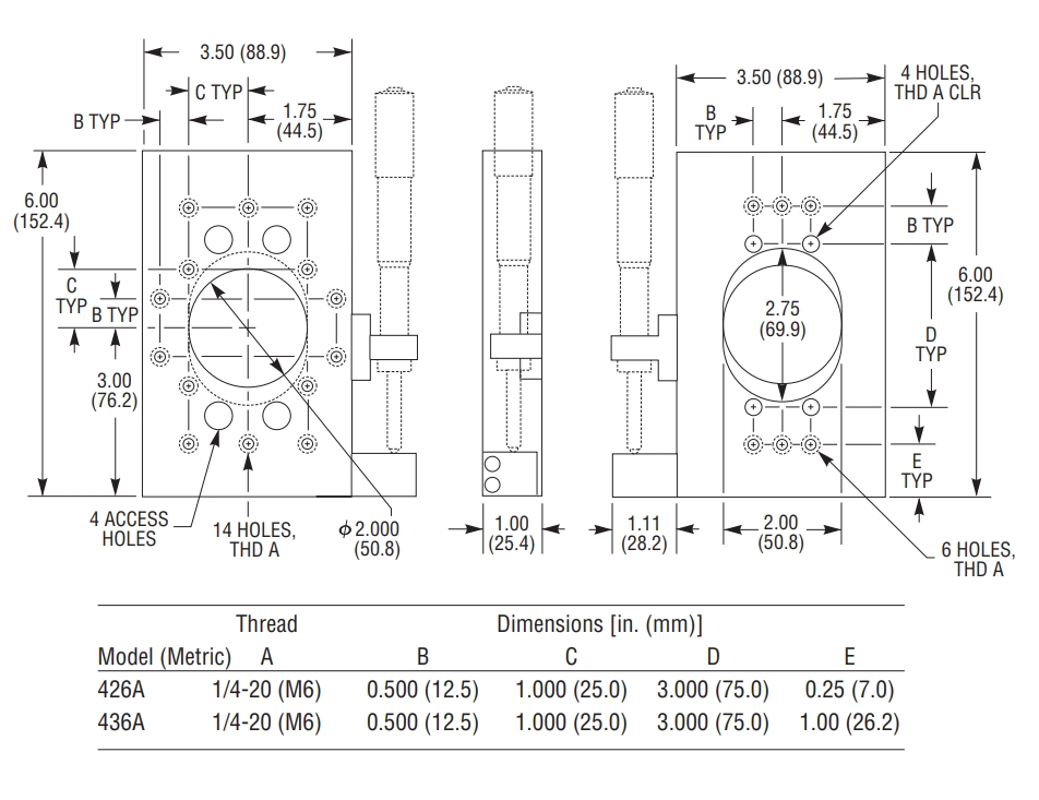 我们的426/436系列位移台很容易堆叠,也可以与我们的 360-90型开槽斜支架结合使用,用于3轴(XYZ)平移。零干扰锁确保每个位移台的行程不相互影响。安装区域在实心平台或直径为 2 英寸孔径的平台上(426A 型和 436A 型)具有一系列 1/4-20 或 M6 的螺纹孔,该孔在 0.625 英寸 (16 mm) 的行程中始终显露在外。该视频演示了如何利用3个426位移台和一个360-90的斜支架来组装3轴(XYZ)手动线性平移系统。(请注意,建议使用左手配置进行垂直平移。)