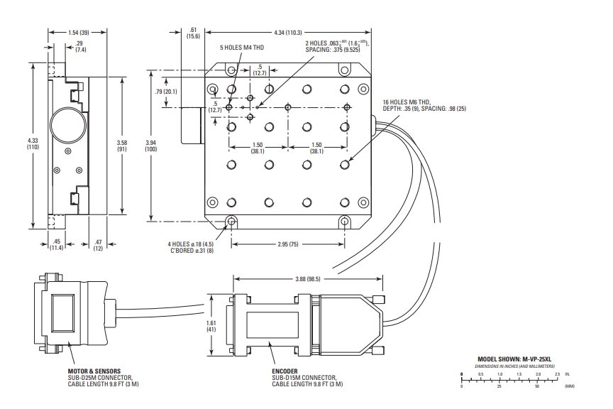 VP-25XL 系列采用线性钢制刻度编码器,确保XPS高级运动控制系统命令控制的定位精度达到 ±1 µm。