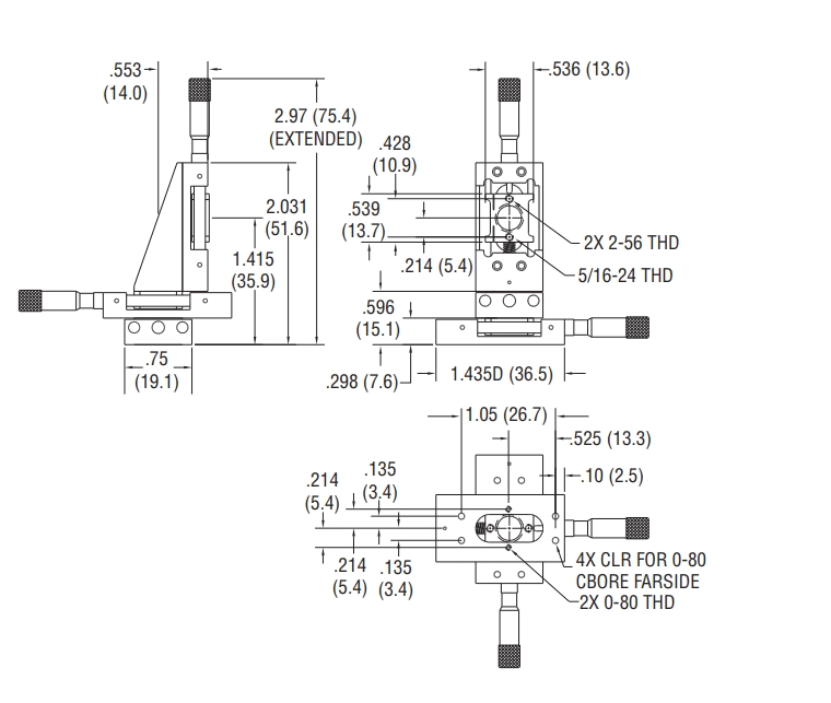 XYZ线性位移台,微型,测微计,0.20 英寸行程,0.75 磅载重