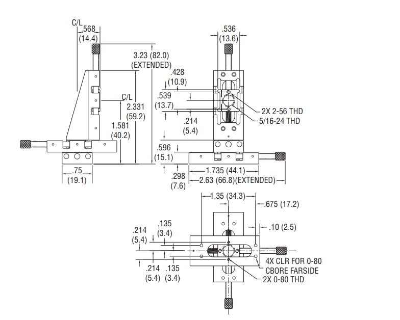 XYZ线性位移台,微型,0.50 英寸行程,0.75 磅载重能力