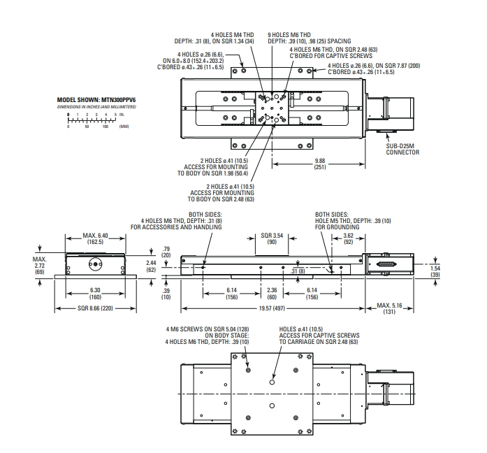 电动线性位移台,不锈钢,步进电机,300mm行程,真空,M4&M6
