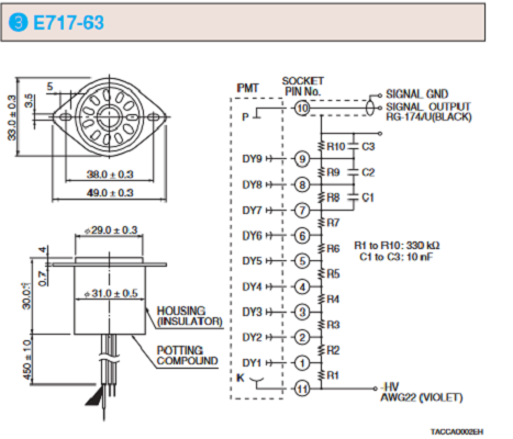 HAMAMATSU滨松 D型插座组件 E717-63 详细参数 适用的 PMT 28 mm 侧面式 电源电压极性 - [Max. Rating] 绝缘电压(机箱 - 引脚) 1500 V [Max. Rating] 电源电压 1500 V [Max. Rating] 分压器电流 0.45 mA 信号漏电流最大值 1.0 x 10-10 A 总分压器电阻 3.3 MΩ 最大值 DC 模式下的线性输出 22(1500 V 时)μA 0755 84689265 手机/微信:18320955412 QQ:2423332841 邮箱:2423332841@qq.com...
