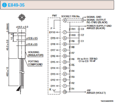HAMAMATSU滨松 D型插座组件 E849-35 详细参数 适用的 PMT 13 mm 端窗型 电源电压极性 - [Max. Rating] 绝缘电压(机箱 - 引脚) 1250 V [Max. Rating] 电源电压 1250 V [Max. Rating] 分压器电流 0.34 mA 信号漏电流最大值 1.0 x 10-10 A 总分压器电阻 3.63 MΩ 最大值 DC 模式下的线性输出 17(1250 V 时)μA 0755 84689265 手机/微信:18320955412 QQ:2423332841 邮箱:2423332841@qq.com...