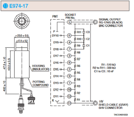 HAMAMATSU滨松 D型插座组件 E974-17 详细参数 适用的 PMT 19 mm 端窗型 电源电压极性 - [Max. Rating] 绝缘电压(机箱 - 引脚) 1800 V [Max. Rating] 电源电压 1800 V [Max. Rating] 分压器电流 0.48 mA 信号漏电流最大值 1.0 x 10-10 A 总分压器电阻 3.81 MΩ 最大值 DC 模式下的线性输出 23(1800 V 时)μA 备注 E974-13,带连接器 0755 84689265 手机/微信:18320955412 QQ:2423332841 邮箱:2423332841@qq.com...