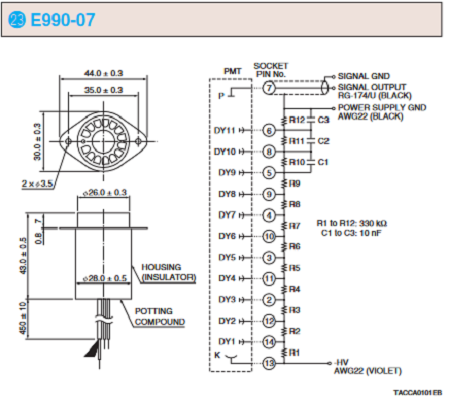HAMAMATSU滨松 D型插座组件 E990-07 详细参数 适用的 PMT 28 mm 端窗型 电源电压极性 - [Max. Rating] 绝缘电压(机箱 - 引脚) 1500 V [Max. Rating] 电源电压 1500 V [Max. Rating] 分压器电流 0.38 mA 信号漏电流最大值 1.0 x 10-10 A 总分压器电阻 3.96 MΩ 最大值 DC 模式下的线性输出 18(1500 V 时)μA 0755 84689265 手机/微信:18320955412 QQ:2423332841 邮箱:2423332841@qq.com...