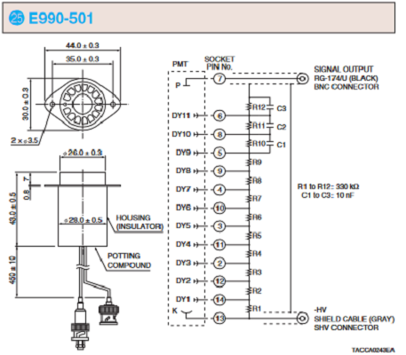 HAMAMATSU滨松 D型插座组件 E990-501 详细参数 适用的 PMT 28 mm 端窗型 电源电压极性 - [Max. Rating] 绝缘电压(机箱 - 引脚) 1500 V [Max. Rating] 电源电压 1500 V [Max. Rating] 分压器电流 0.38 mA 信号漏电流最大值 1.0 x 10-10 A 总分压器电阻 3.96 MΩ 最大值 DC 模式下的线性输出 18(1500 V 时)μA 备注 E990-07,带连接器 0755 84689265 手机/微信:18320955412 QQ:2423332841 邮箱:2423332841@qq.com...