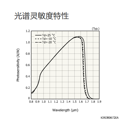 典型值 Tc = -10°C,除非另有说明,感光灵敏度:λ = λp,暗电流:VR = 1 V,截止频率:VR = 1 V,RL = 50 Ω,结电容:VR = 1 V,f = 1 MHz |