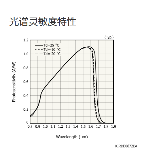 典型值 Tc = -10°C,除非另有说明,感光灵敏度:λ = λp,暗电流:VR = 1 V,截止频率:VR = 1 V,RL = 50 Ω,结电容:VR = 1 V,f = 1 MHz |