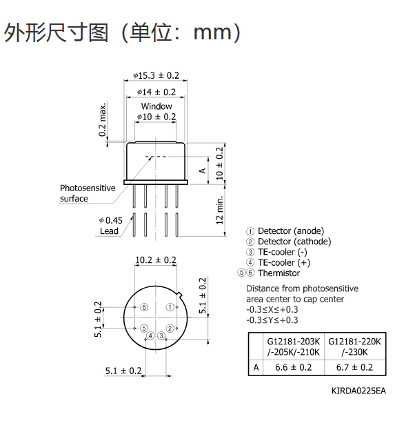 HAMAMATSU滨松 InGaAs PIN 光电二极管 G12181-205K
