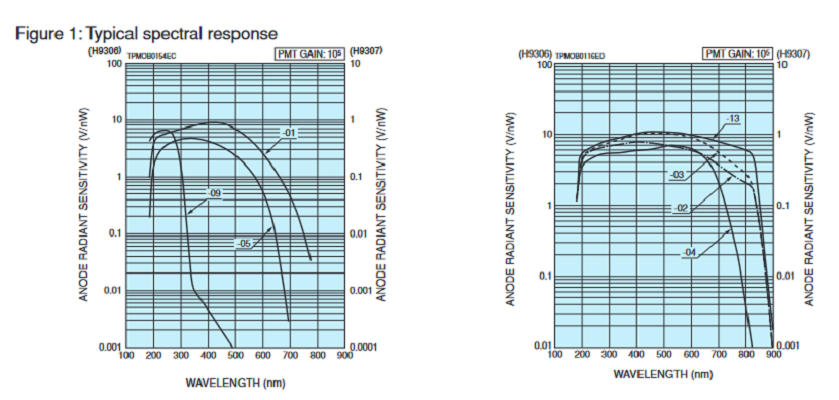 [Anode] V 输出电压取决于 PMT 暗电流典型值 |