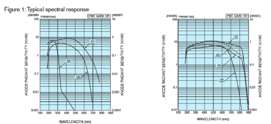 [Anode] V 输出电压取决于 PMT 暗电流典型值 |