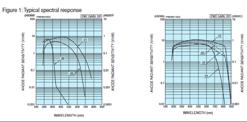 [Anode] V 输出电压取决于 PMT 暗电流典型值 |