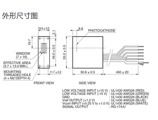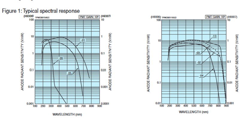 [Anode] V 输出电压取决于 PMT 暗电流典型值 |