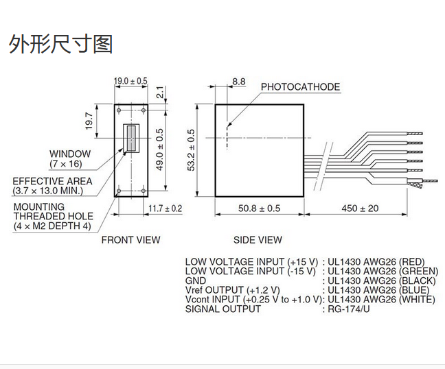 光阴极面区域尺寸 |