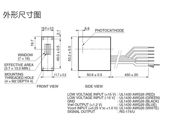 [Anode] V 输出电压取决于 PMT 暗电流典型值 |