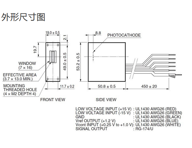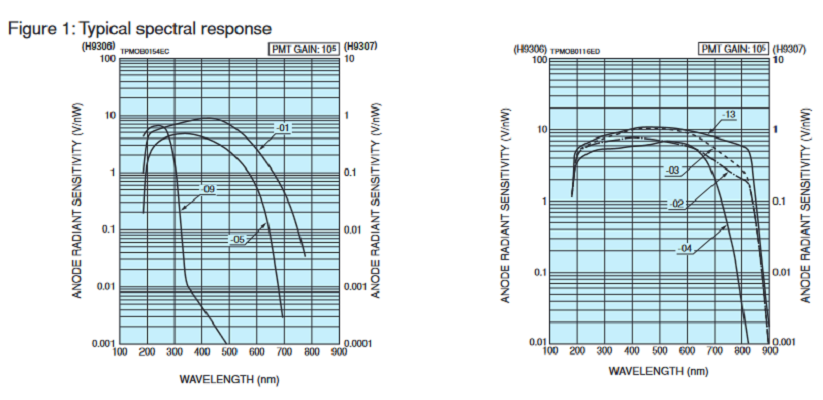 [Anode] V 输出电压取决于 PMT 暗电流典型值 |