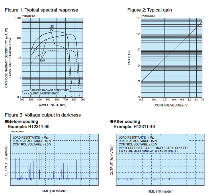 [Anode] V 输出电压取决于 PMT 暗电流典型值 |