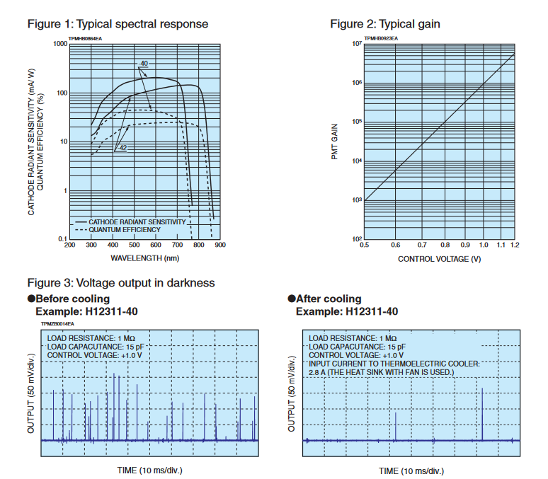 [Anode] V 输出电压取决于 PMT 暗电流典型值 |