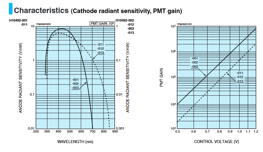 [Anode] V 输出电压取决于 PMT 暗电流典型值 |