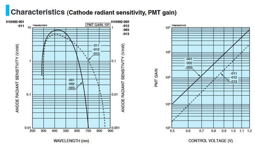 [Anode] V 输出电压取决于 PMT 暗电流典型值 |
