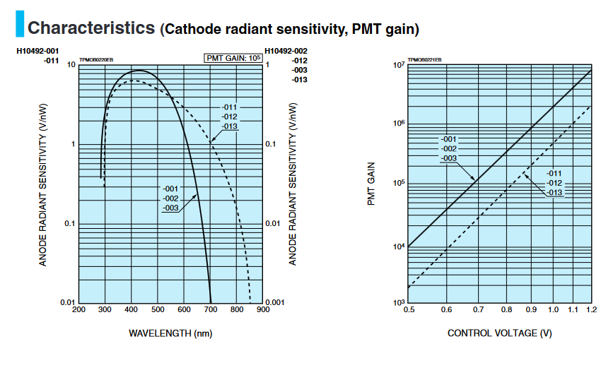 [Anode] V 输出电压取决于 PMT 暗电流典型值 |