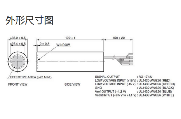 光阴极面区域尺寸 |