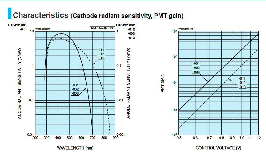 [Anode] V 输出电压取决于 PMT 暗电流典型值 |