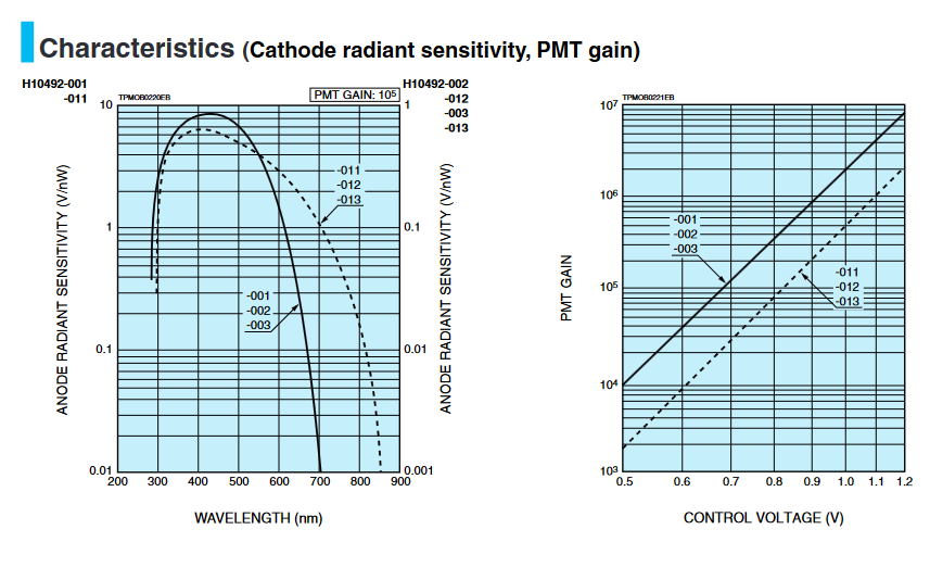 [Anode] V 输出电压取决于 PMT 暗电流典型值 |