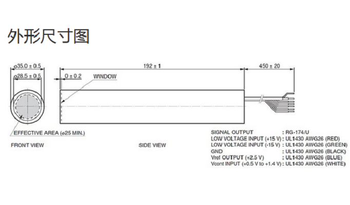 光阴极面区域尺寸 |