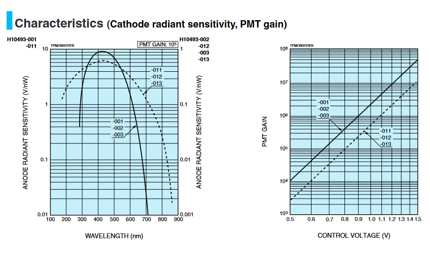 [Anode] V 输出电压取决于 PMT 暗电流典型值 |