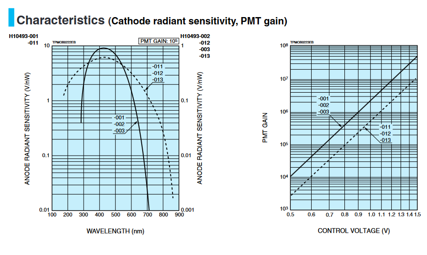 [Anode] V 输出电压取决于 PMT 暗电流典型值 |
