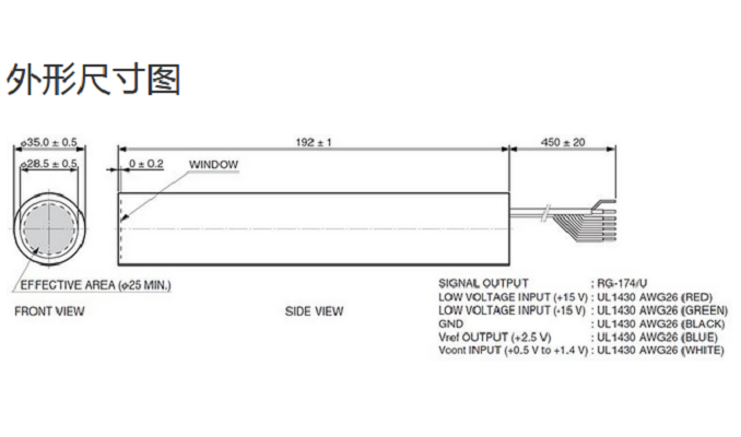 光阴极面区域尺寸 |