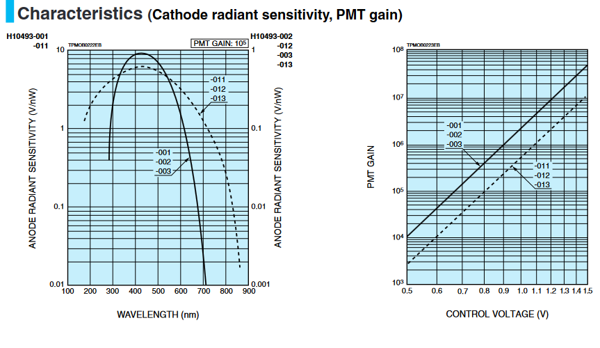 [Anode] V 输出电压取决于 PMT 暗电流典型值 |