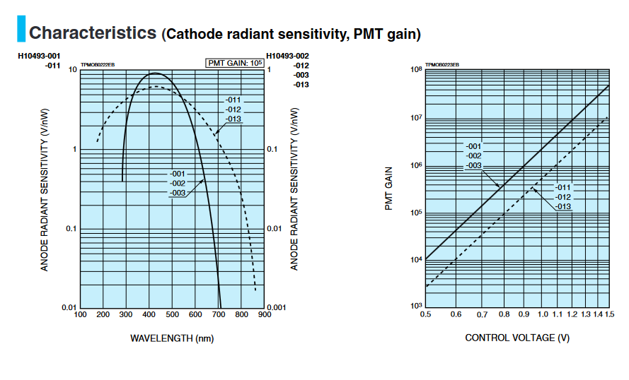 [Anode] V 输出电压取决于 PMT 暗电流典型值 |