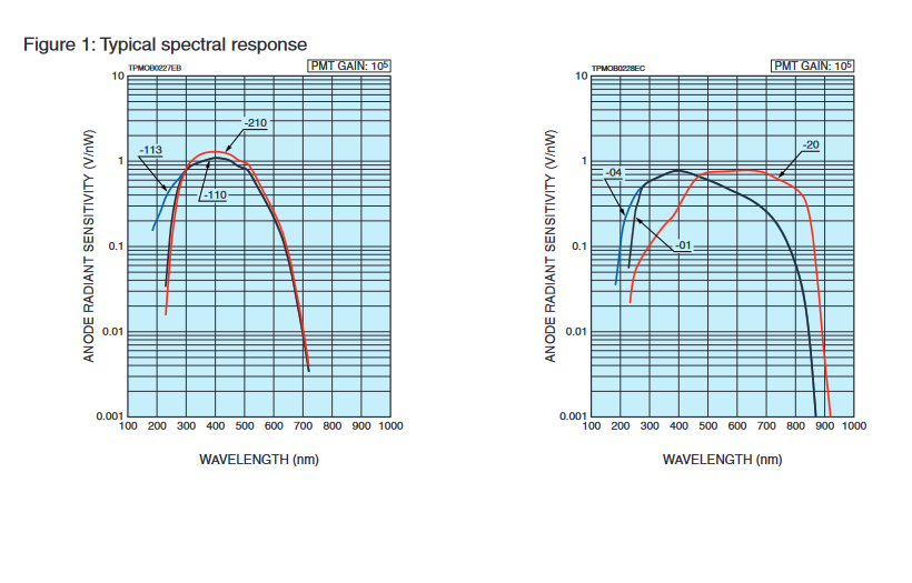 [Anode] V 输出电压取决于 PMT 暗电流典型值 |