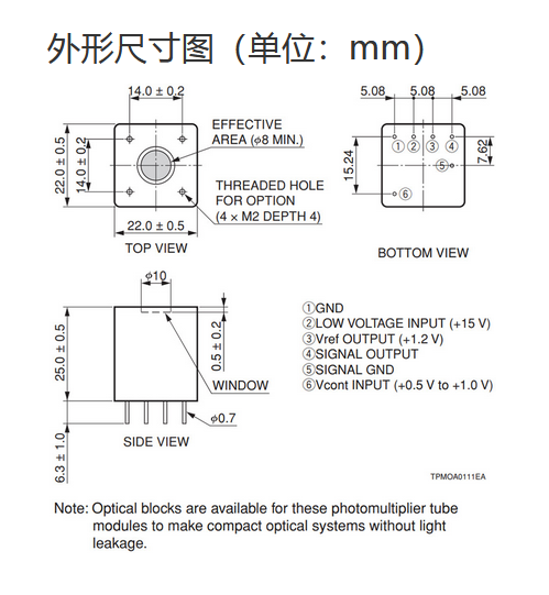 光阴极面区域尺寸 |