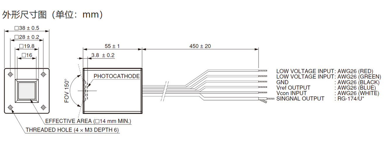 光阴极面区域尺寸 |