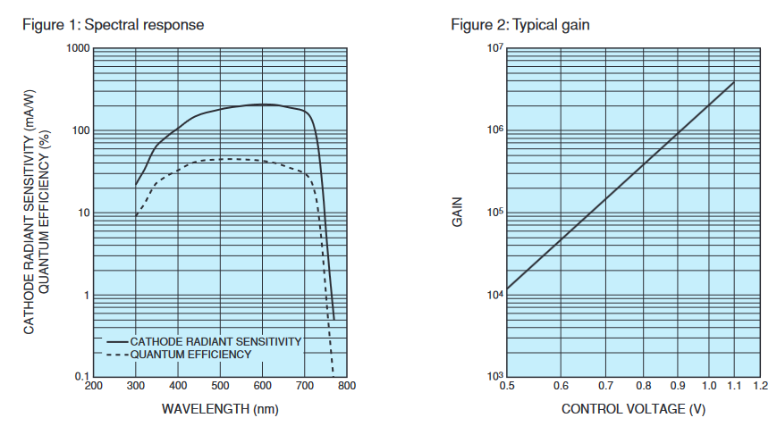 HAMAMATSU滨松 光电倍增管模块 H15461-40-01 详细参数 光阴极面区域形状 正方形 光阴极面区域尺寸 14 mm x 14 mm 波长(短) 300 nm 波长(长) 740 nm 波长(峰值) 520 nm 尺寸 (W x H x D) 38 mm x 38 mm x 55 mm 输入电压 +4.5 至 +5.5 V 最大值 输入电压 +5.5 V 最大值 输入电流 +3.5 mA 最大值 输出信号电流 100 μA 最大值 控制电压 +1.1 V 建议的控制电压调节范围 +0.5 至 +1.0 V [阴极] 辐射灵敏度典型值 189 mA/W [阴极] 亮度灵敏度典型值 850 μA/lm [阳极] 辐射灵敏度典型值 3.8 x 105 A/W [阳极] 亮度灵敏度典型值 1.7 x 103 A/lm [阳极] 暗电流典型值 10 nA [阳极] 暗电流最大值 50 nA [时间响应] 上升时间典型值 1.1 ns 波纹噪声(峰间)最大值 0.2 mV 建立时间最大值 10 s 工作环境温度 +5 至 +50 °C 储存温度 -20 至 +50 °C 重量 105 g 0755 84689265 手机/微信:18320955412 QQ:2423332841 邮箱:2423332841@qq.com ...
