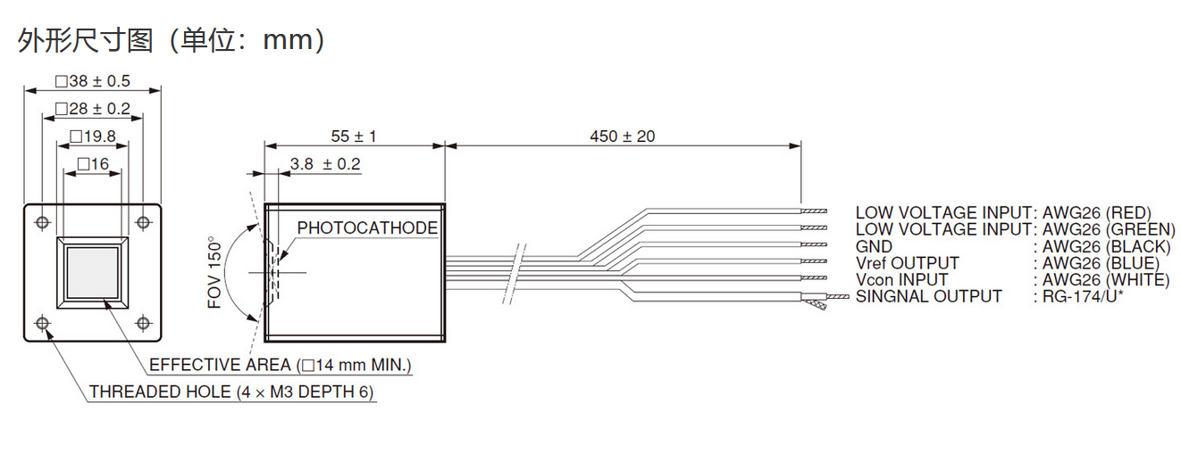 光阴极面区域尺寸 |