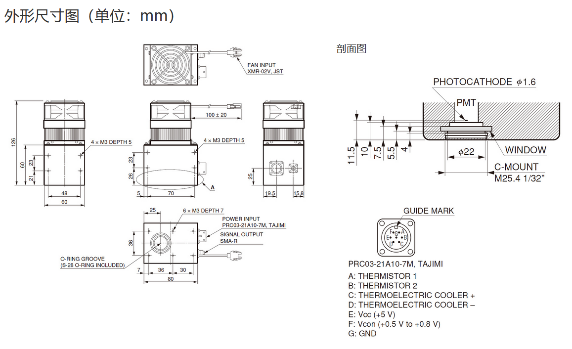 光阴极面区域尺寸 |