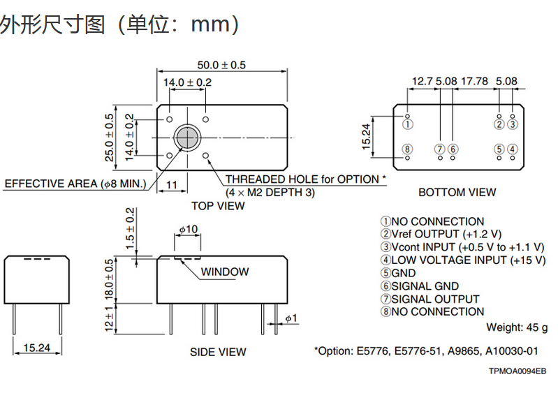 光阴极面区域尺寸 |