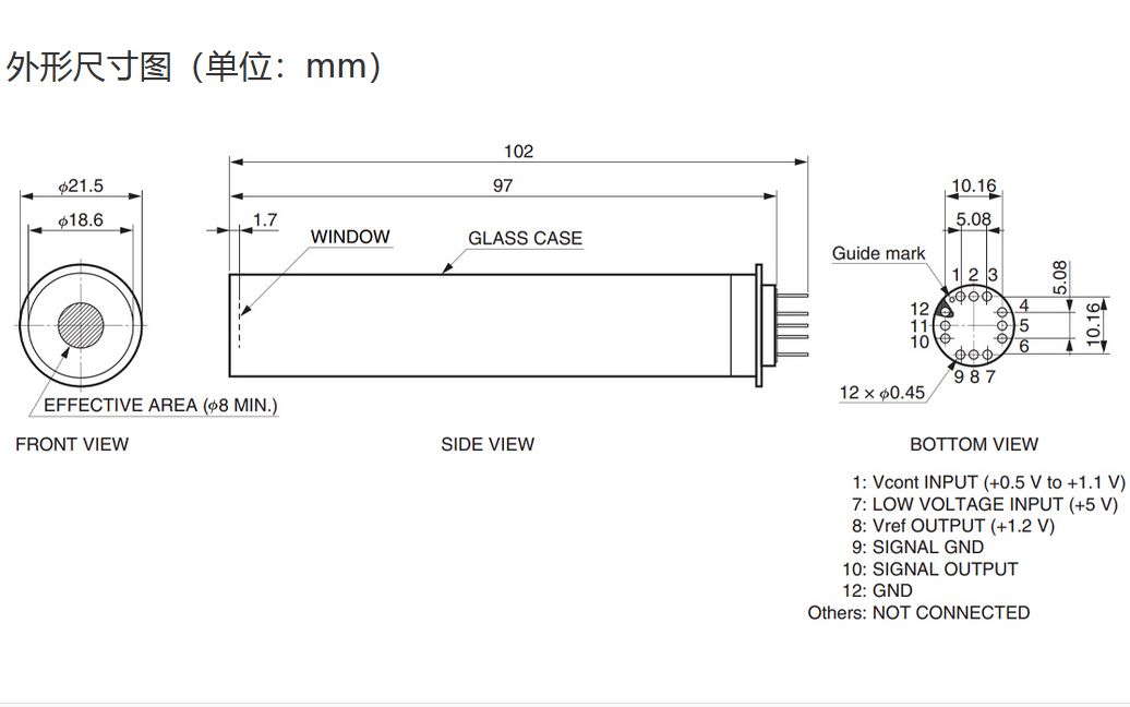 光阴极面区域尺寸  |