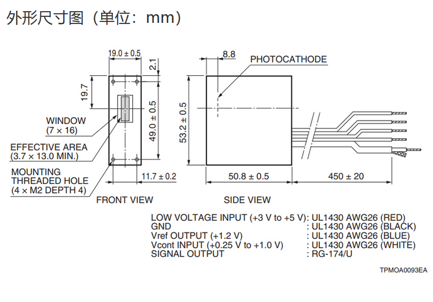 光阴极面区域尺寸  |