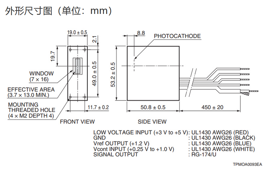 光阴极面区域尺寸  |